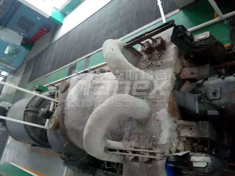 案例簡介:廠內(nèi)配有60000Kw汽輪機,運行時噪聲較大,原先配有的汽輪機保溫殼體具有一定的降噪效果,但空間小、不利于檢修,且隔音效果不佳。漢克斯隔音針對客戶需求重新設計汽輪機隔聲罩,預留空間、增設隔音門窗,方便工人日常巡查及設備維護,且配備散熱系統(tǒng),保持罩內(nèi)溫度均衡。