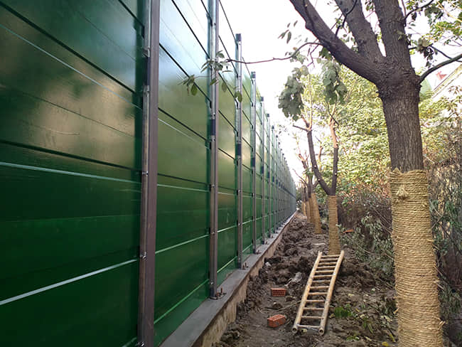 3、 隔聲屏障屏體??紤]到降噪工程的使用壽命,我們采用75mm厚金屬吸隔聲屏體作為降噪結構,平均吸聲系數在0.80以,屏體內部用多層憎水玻璃棉與纖維布結構。
