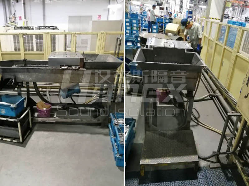 觀察窗:在隔音罩的進(jìn)料口移門(mén)上設(shè)置1扇塑膠玻璃觀察窗,玻璃使用橡膠墊保護(hù),同時(shí)輔以玻璃膠密封,為提高隔音量設(shè)計(jì)使用2層有機(jī)玻璃。觀察窗規(guī)格為:W300×H300mm方便在設(shè)備運(yùn)行時(shí)對(duì)內(nèi)部情況進(jìn)行實(shí)時(shí)觀察。