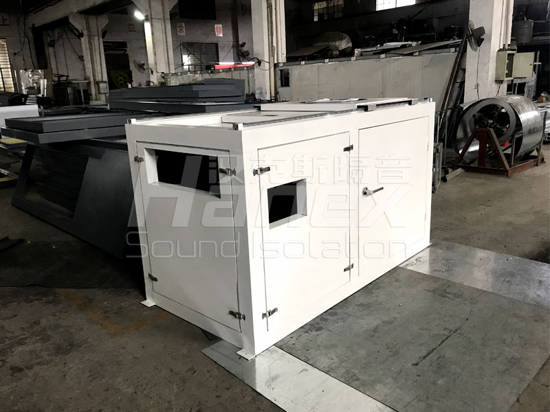 4、 隔音罩墻板可拆卸設(shè)計(jì):隔音罩使用100*100的不銹鋼方鋼搭建框架,框架內(nèi)部嵌隔音板,板與框架之間采用搭扣固定,板快在四個(gè)角各安裝一個(gè)不銹鋼搭扣,與框架鏈接。在松開(kāi)4枚搭扣時(shí)即可取下該板塊。使整個(gè)隔音房可隨時(shí)拆卸。