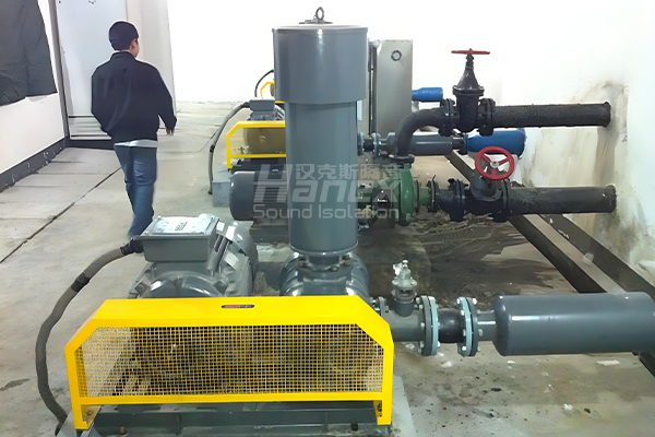 每臺羅茨風機均已安裝隔聲罩,隔聲罩外壁材料為鍍鋅鋼板,內壁材料為穿孔鋼板,中間填充玻璃棉。