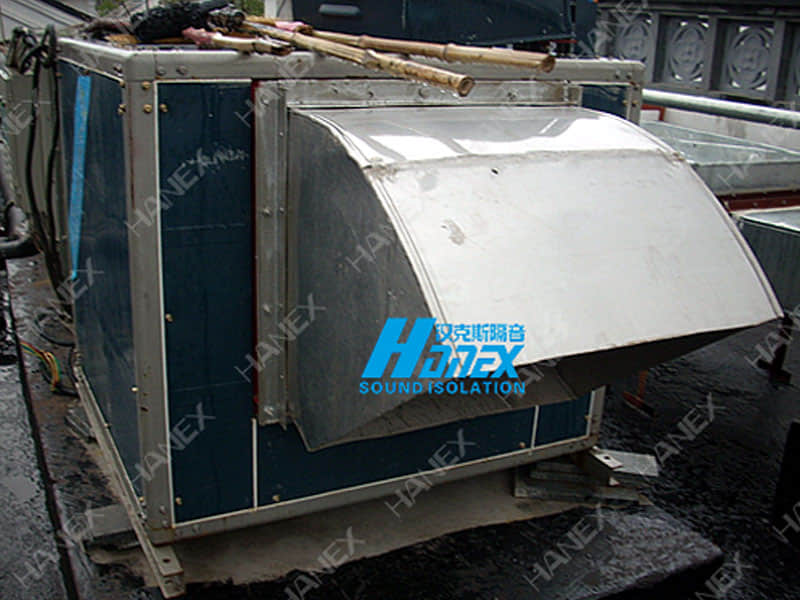 一、案例簡介:酒店總統套房南側平臺,安裝有2臺油煙風機和2臺空氣處理器。設備正常運行引起總統套房1米處噪聲達55.3分貝。